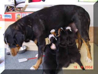Die Welpen sind hier 6 Wochen alt (Wurftag 10.7.2004)